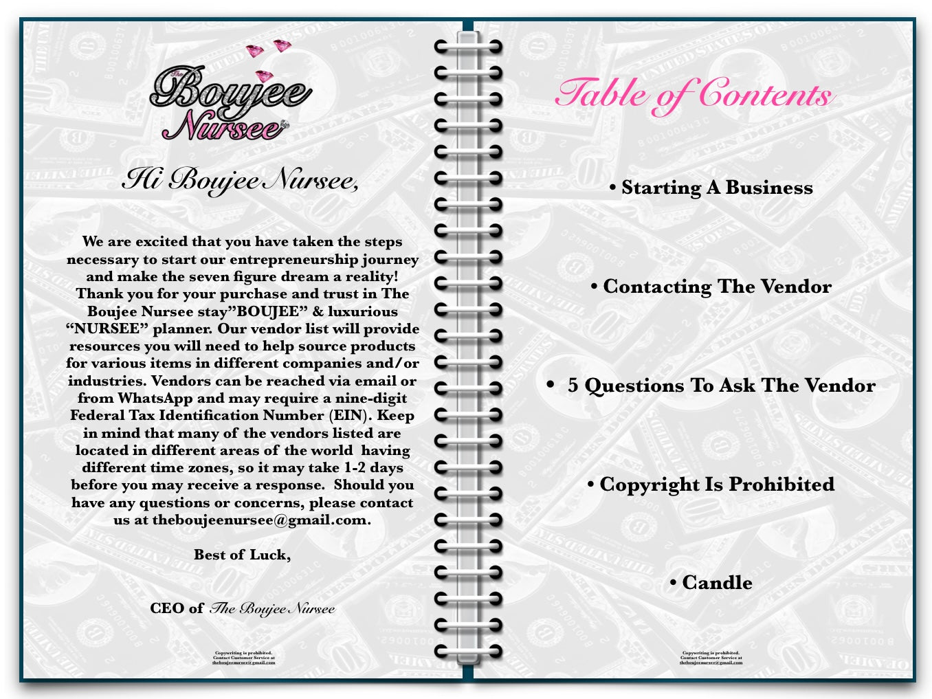 Hi Boujee Nursee! Are you ready to start that candle business you always dreamed of? Now, you can with using our 20 candle vendor lists. We have done all the work for you compiled from our most trusted, highest quality guaranteed vendors. Plus, BONUS business tools on how to get your business started, how to communicate with vendors, and what to say! These vendors specialize in all types of candle making items, with the latest trendy styles ranging from nature or soy wax, wicks, fragrances, molds, customization and more!